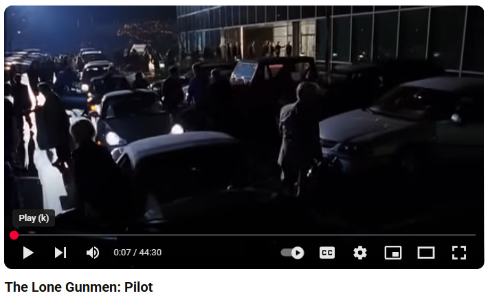 I ask you to watch Pilot because that episode is about a plot by the U.S. Government to do exactly what happened on 9/11/2001. Why is this important? Because the episode ran in March of 2001, six months before the 9/11 tragedy, and the plot for Pilot was suggested to the producer of The Lone Gunmen series by none other than the CIA.