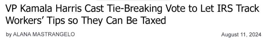 "What I once hated, I now love." - Kamala HarrisKamala used to be all in for taxing tips. Now, she's all in for NOT taxing tips.The LiberatorAug 15, 20241954ShareWait, Kamala, you voted to not only keep taxing tips, but even to allow the IRS get more aggressive!! What changed? Oh, wait…The Donald proposed it and the people loved it. Never mind…Liberals Are NutsThe Liberator